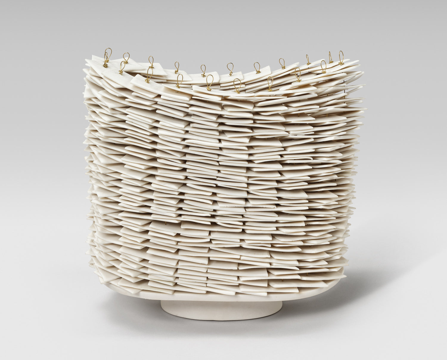 For this body of work, I’ve been using a white stoneware and adding a coarse grog to the clay before starting to build, which adds a lot of texture once the piece is finished. I leave the outside of my work unglazed. I don’t like using glazes to cover up the clay. There’s something so beautiful about this material in its raw state, and it also puts emphasis on the subtle curves and shape of the piece.