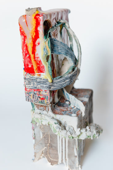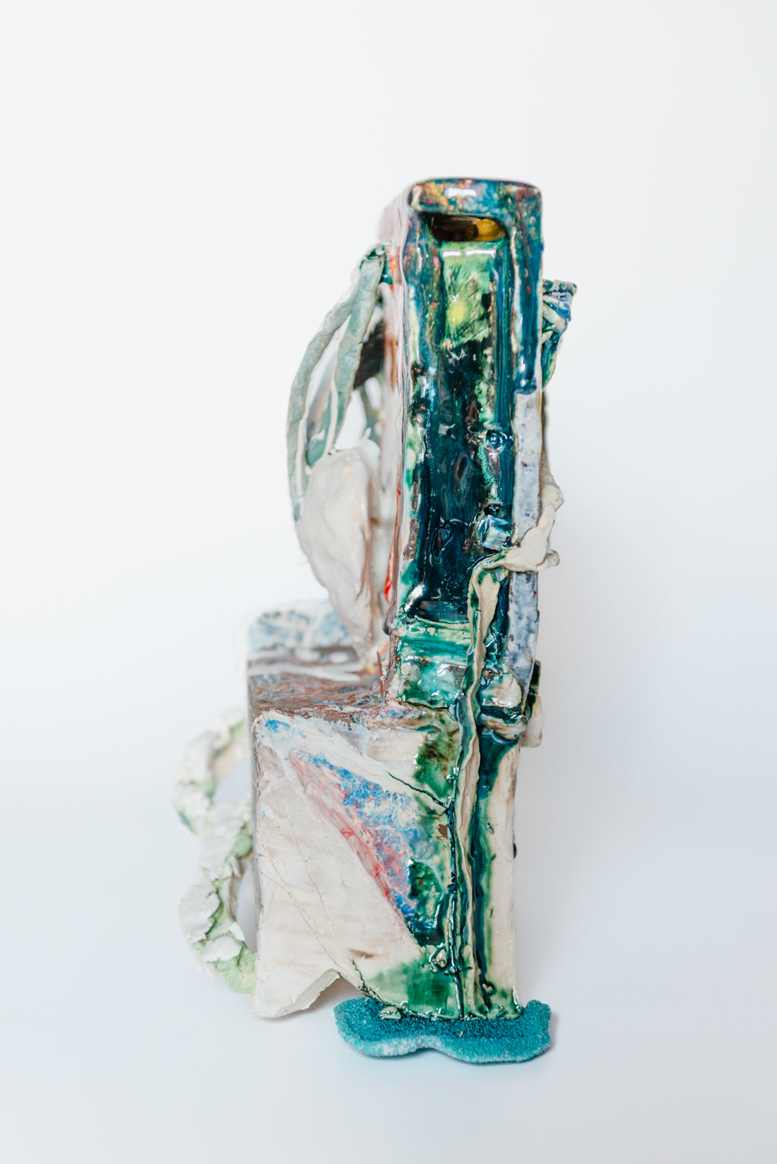 The questions of What Holds resonates closely within my practice. I approach clay as something alive—always shifting, breaking apart, and coming back together. I handbuild and reuse fragments from earlier sculptures, giving them another life in new forms. These hybrids don’t sit neatly within boundaries; they press against the very idea of containment. Instead of closing or concealing, my sculptures feel porous and unsettled, as if what’s inside can’t help but spill out, multiply, or change.