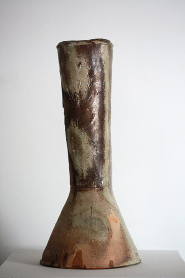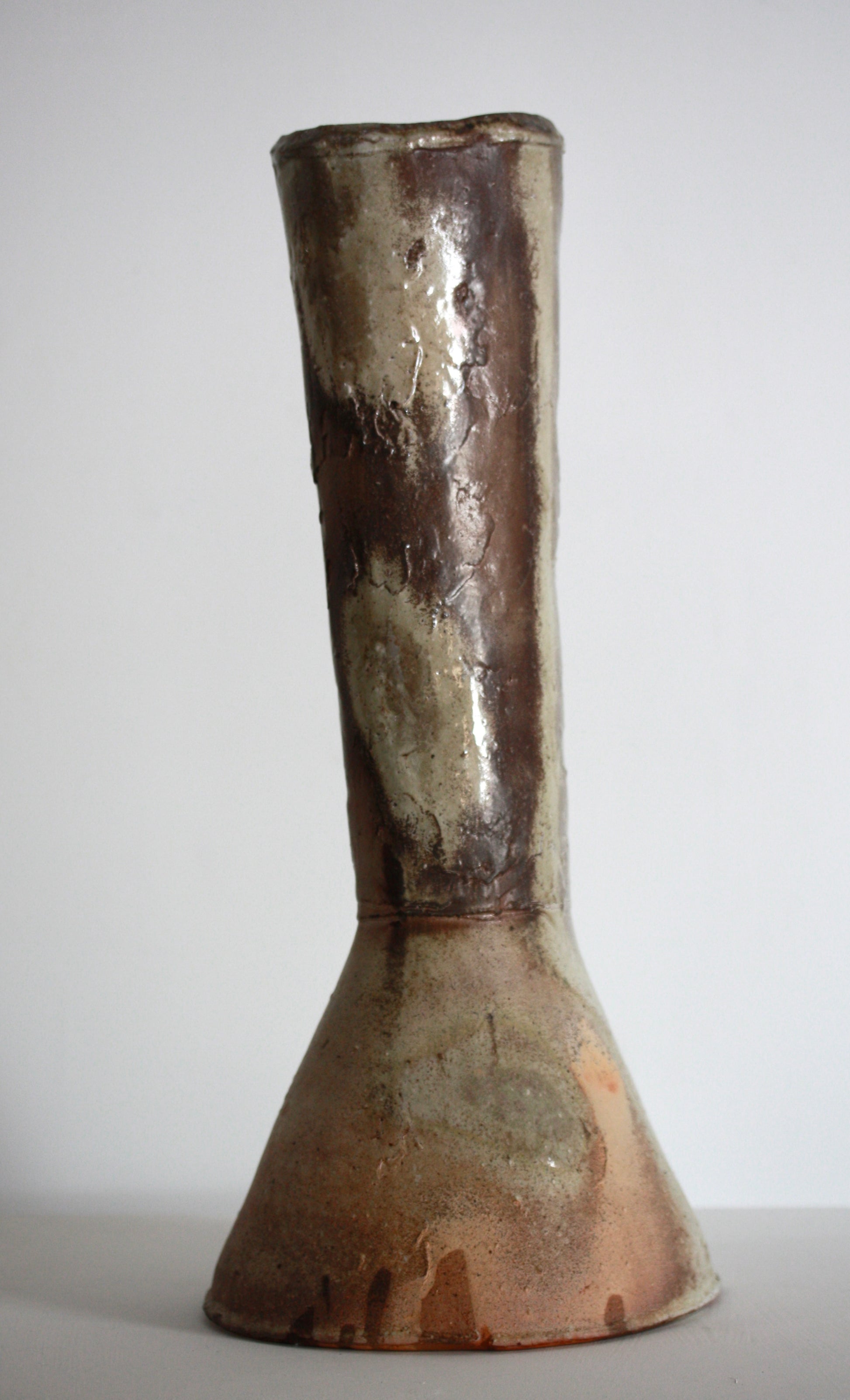 Coil built and fired with wood in artist's Anagama for 4 days. Cooled in reduction.