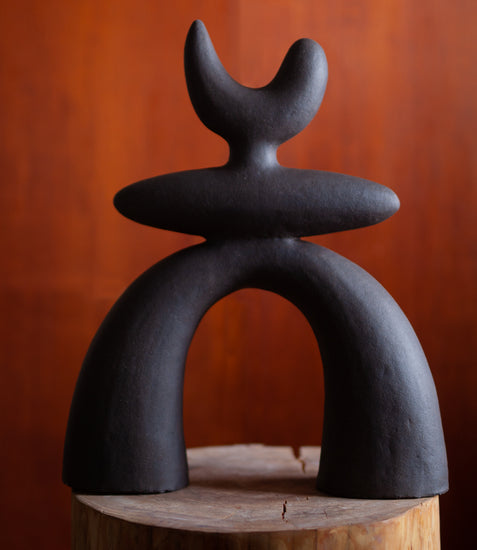 Noe Kuremoto’s work exists at the intersection of mythology, memory, and modernity. A ceramic artist of singular vision, she sculpts entirely by hand, using only the simplest of tools—an intuitive, almost ritualistic process that breathes life into clay. Her sculptural forms evoke the enigmatic presence of Japan’s ancient talismanic figures—Haniwa, Dogū, Komainu—artifacts that, for centuries, stood as guardians against unseen forces. Through her own reinterpretations, Kuremoto asks: What spirits do we need protection from today?