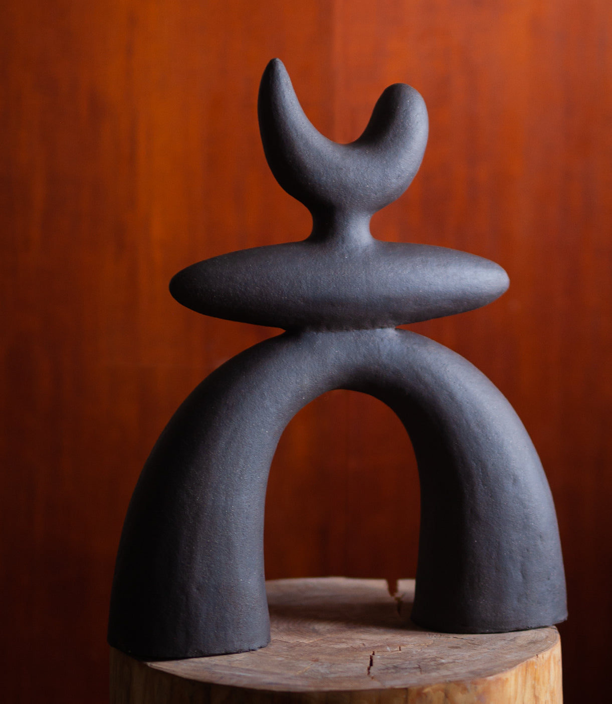 At the heart of her practice lies a deep engagement with the complexities of contemporary existence. Each project begins as an inquiry into the sources of modern discontent—alienation, disconnection, the erosion of meaning in a world increasingly dictated by logic and speed. Her sculptures, with their childlike purity and refined simplicity, offer a counterpoint: a return to something instinctual, something ancient, something we have forgotten but still long for.