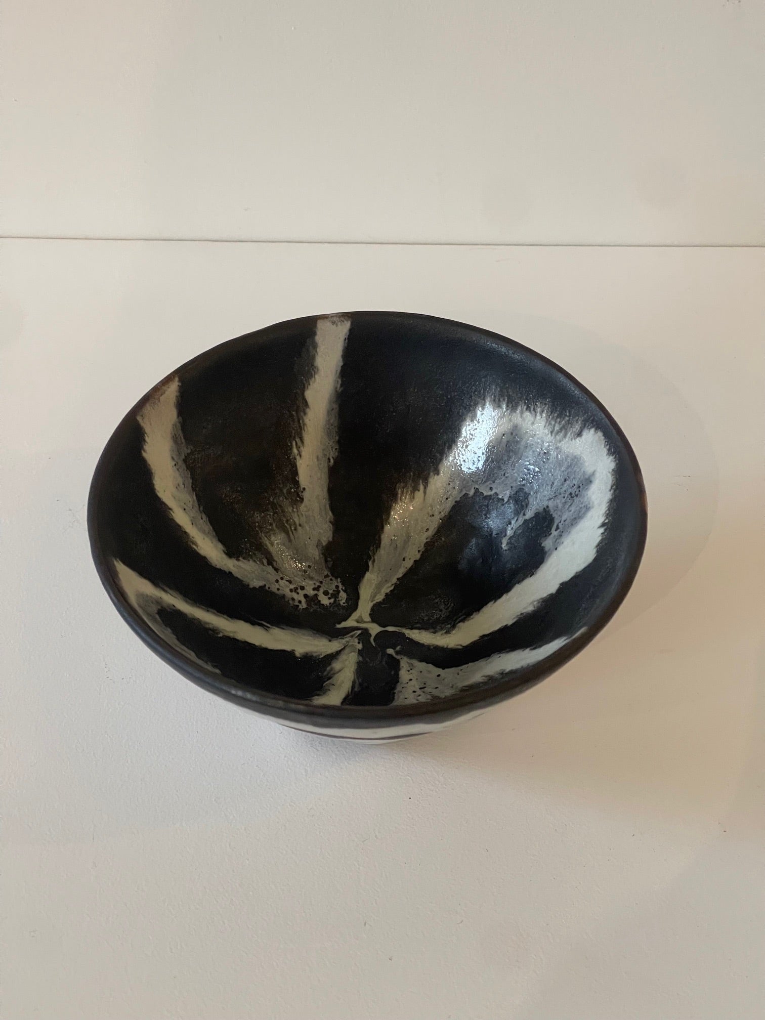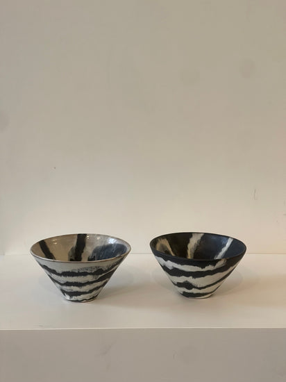 The Haringishes series of porcelain and stoneware vessels has resulted from contemplating the graphic language of Keith Haring, its ability to communicate through deceivingly simple and charming iconography in fluid negative and positive space. The Haringishes vessels are often conical in shape reminding one of a water whirling in a whirlpool. By employing the natural flowing form of these vessels as three-dimensional canvases, the aim is to enhance the perception of movement within the image and space itself.