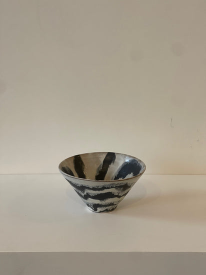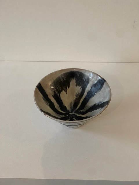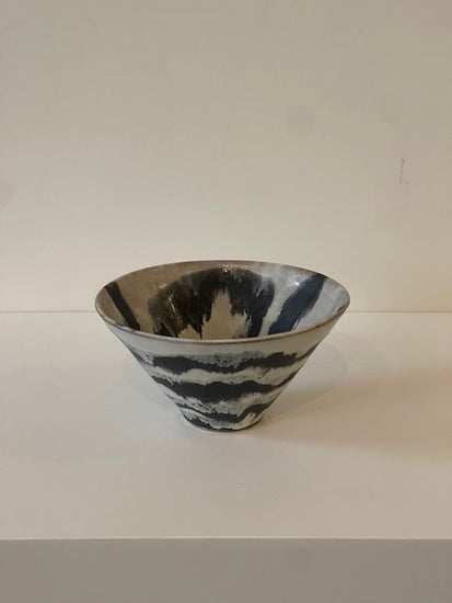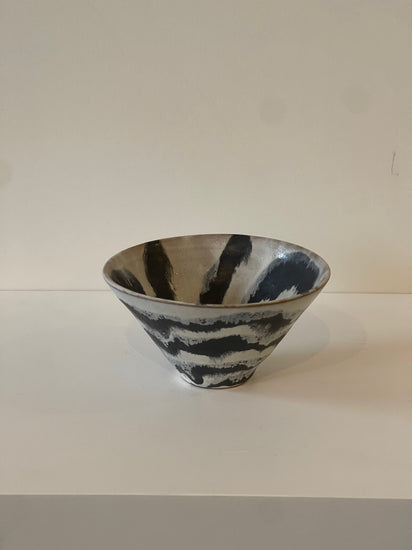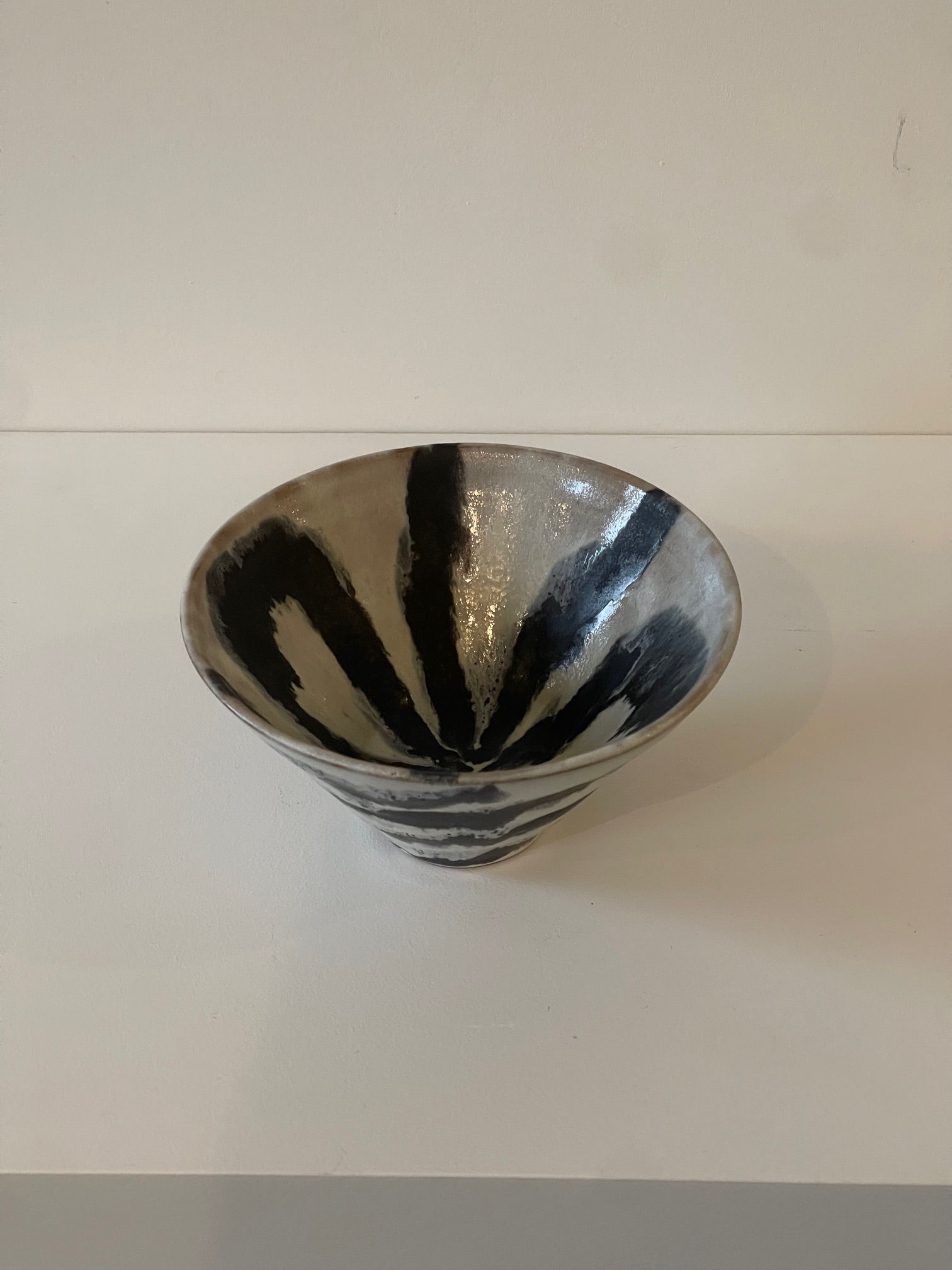 This series of sculptural, hand-built vessels is titled, "The Haring-ish(es)" and draws from the graphic language of artist, Keith Haring. Expressive lines, rhythmic contours and symbols speak across language and culture as Haring had the ability to communicate through deceivingly simple and charming iconography. Neish wraps this graphic energy around a conical form, letting the vessel’s natural swirl become part of the artwork’s movement within the image and space itself.
