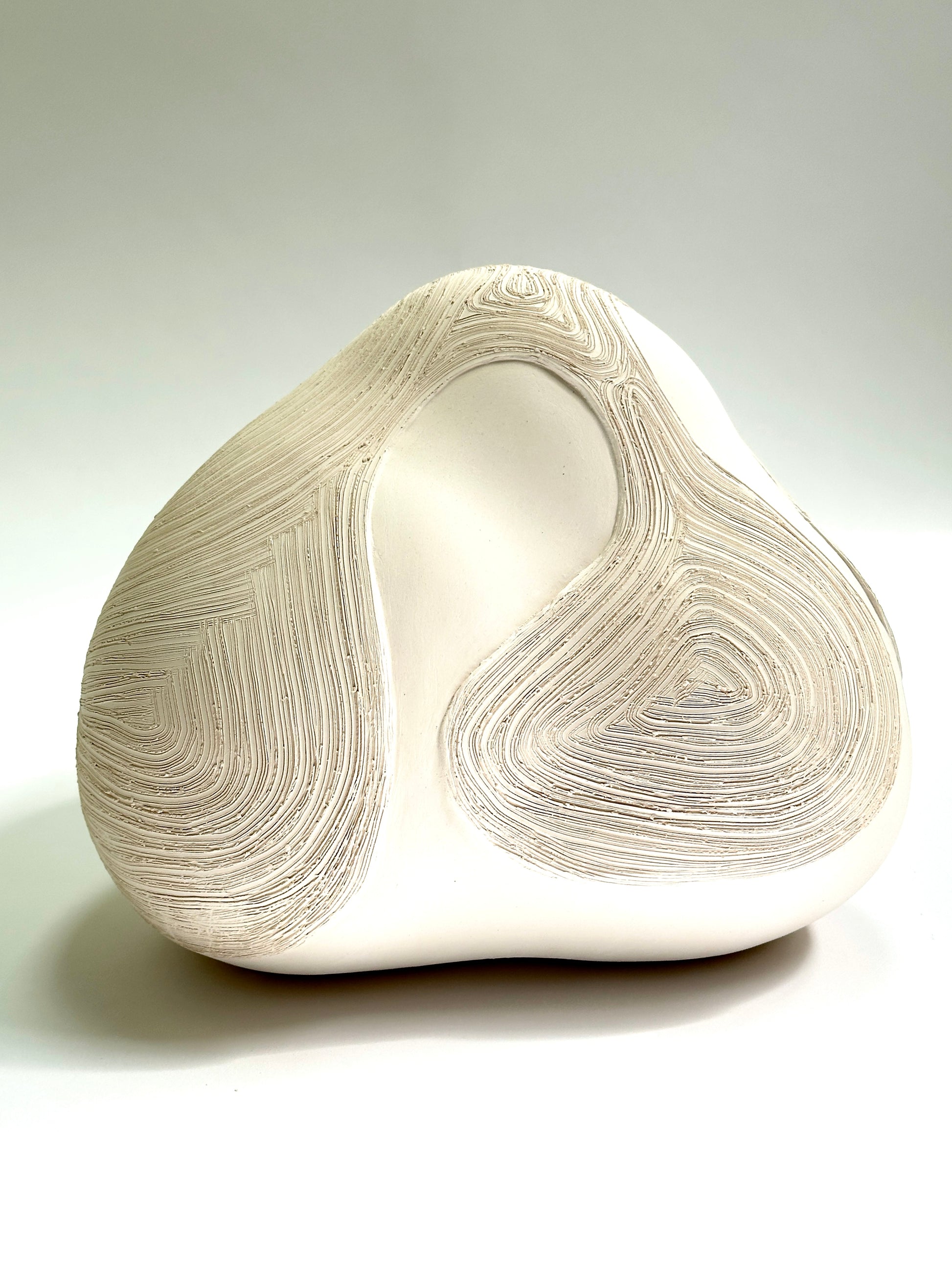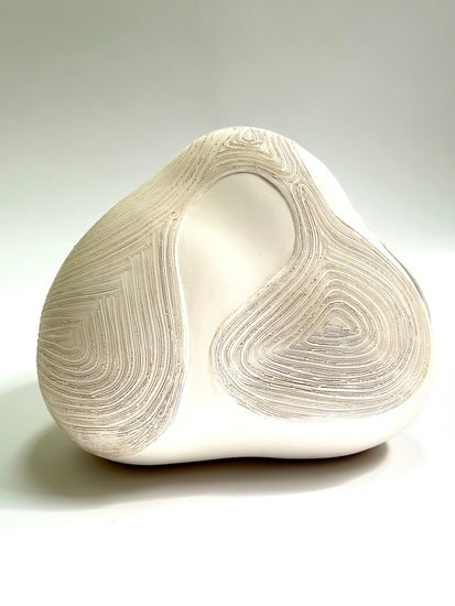"Making Waves" is inspired by the undulating curves, graceful arcs, and fluid lines that evoke the dynamic nature of the ocean. Each piece is crafted to capture the essence of a wave, with its ebb and flow, rise and fall. Etched patterns on the surface add texture and depth and convey movement and energy. The natural colour of the clay remains unglazed allowing the curves and lines to take centre stage without distraction. The white colour also adds a sense of purity and simplicity, enhancing the overall aesthetic and creating a serene and tranquil atmosphere.