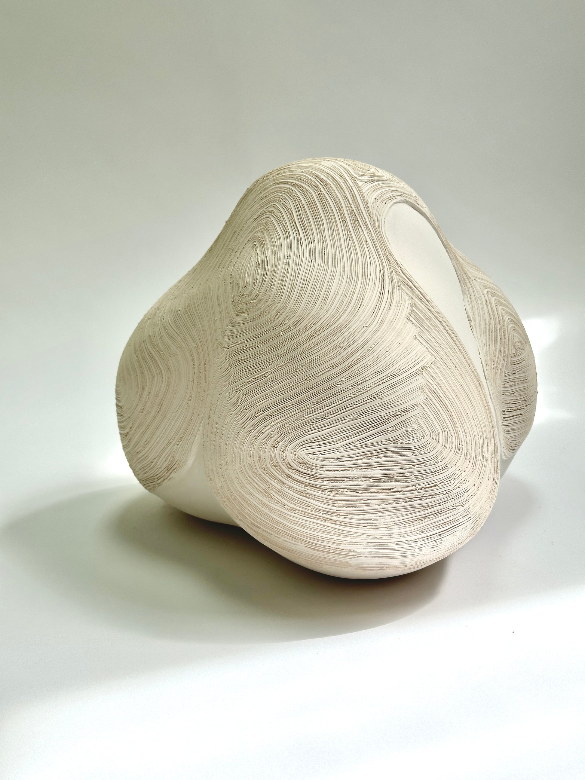 Through the natural and malleable medium of clay, I merge art and nature, forging a connection between the two. Within this realm, I draw my inspiration, exploring themes of femininity, spatial philosophy, and the interconnectedness between humanity and nature. Delving into the depths of these concepts, I aim to challenge conventional notions of vessels and space, giving rise to art that is not only expressive, sensual, and emotive but also resonates with the intricate topography of the world around us.