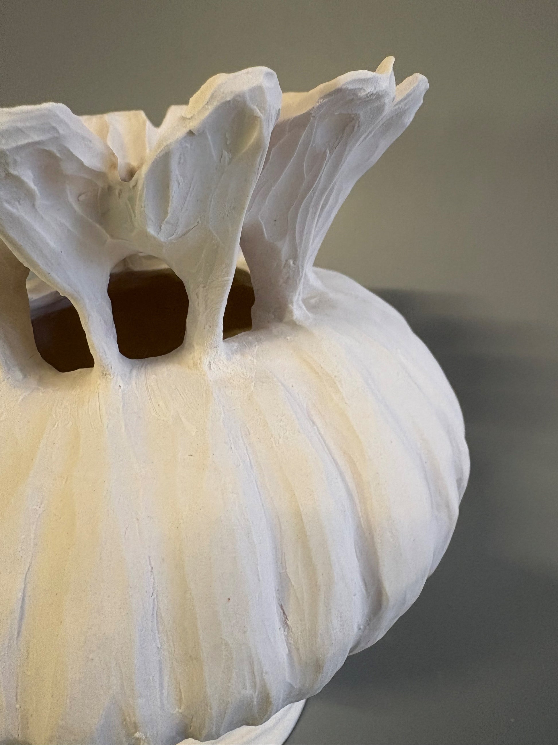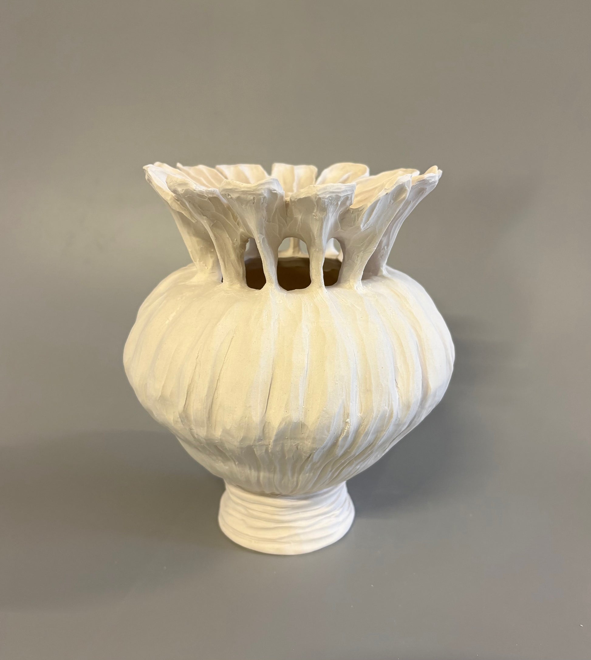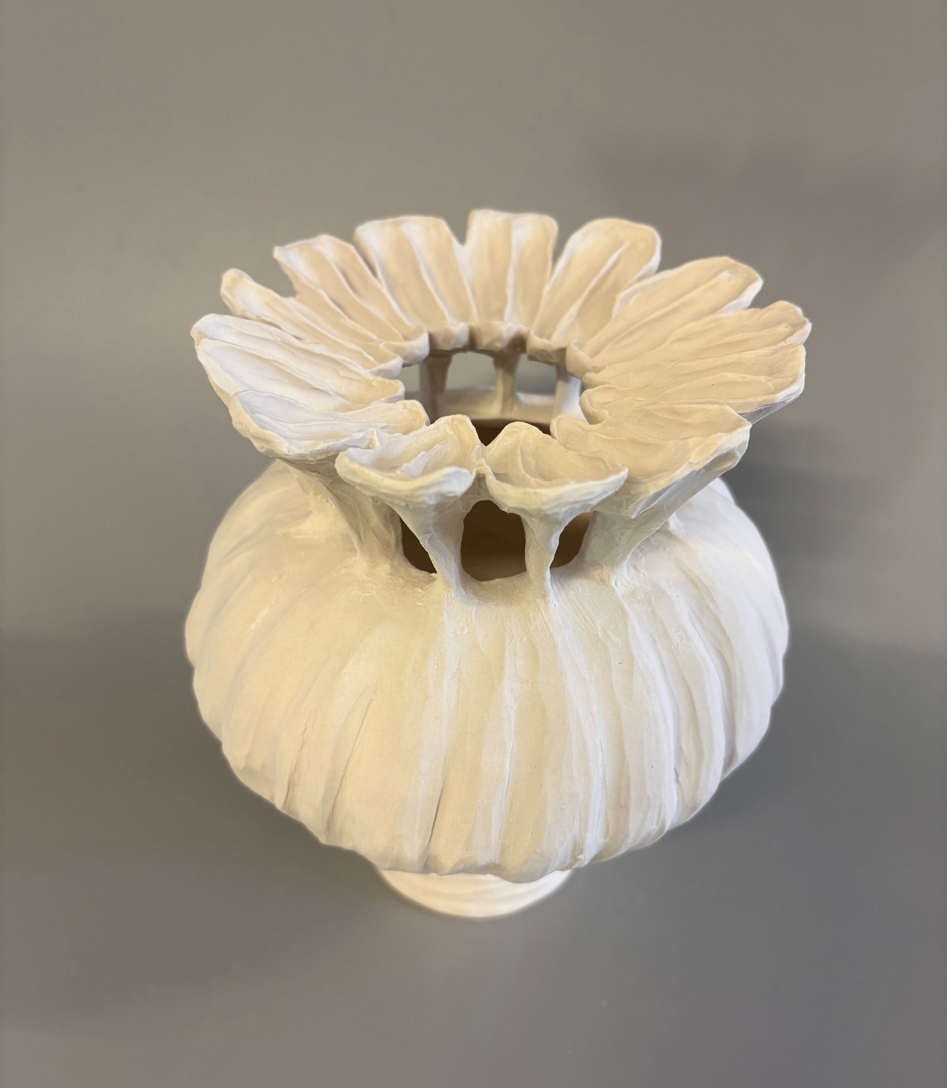 "Making vessels for me has always been about containing space in order to have a boundary to fill or to leave empty, but most importantly to define the space, because without that there would be no space to fill, or no potential. The opium poppy, on the other hand, among many other things, has been seen as a symbol of transcendence, a way to push and break down the barriers we build. I like that these two seemingly opposing ideas are working together in the same."