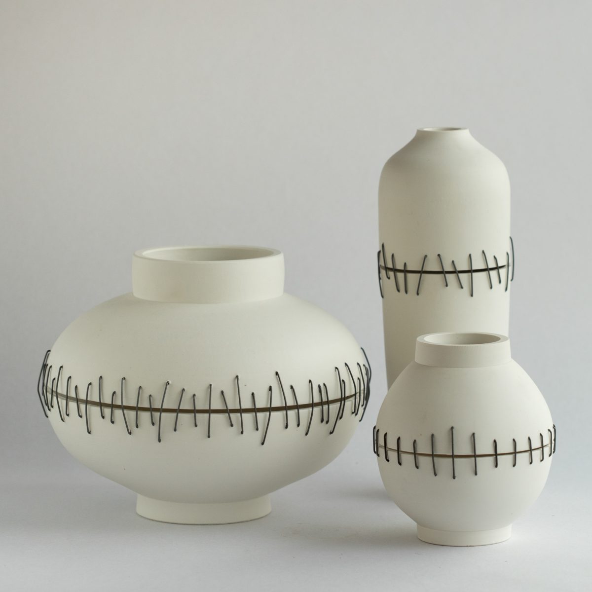 I tend to think of my process in two parts where forms are a built canvas for surface design. Decoration is a way for me to expand on and individuate work, allowing me to explore multiple ideas about a single object. The pieces I’ve included in this presentation play with lines on a surface. By blending coils of clay onto the outside of traditional vessel forms, a three-dimensional line becomes a shallow wall and starts to blur the separation between decoration and the body of a pot. This method of building onto forms, allows me to alter their silhouettes and the space they occupy, not just through the volume contained within them.