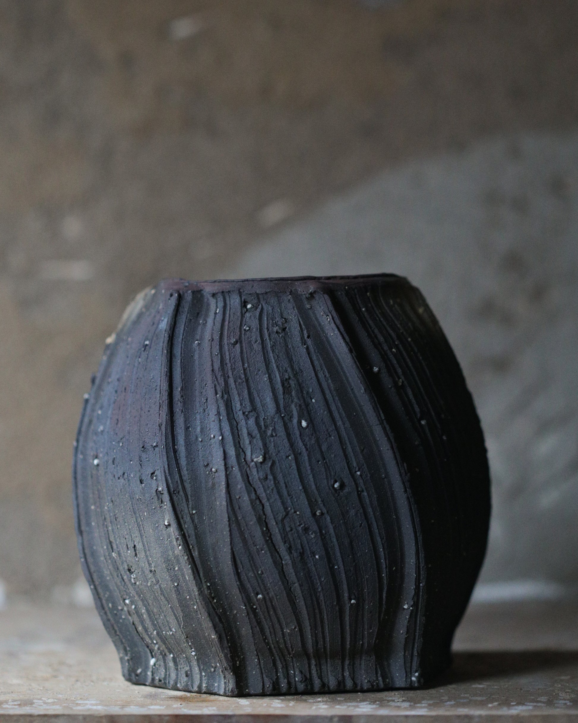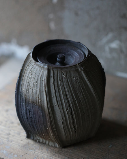 Material: Local Ishikawa Clay, Reduction fired 1245, Tanka Technique